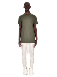 RICK OWENS FW22 STROBE GRID LEVEL T IN GREEN CLASSIC COTTON JERSEY THIS GRID LEVEL T IS BELOW HIP LENGTH WITH SHORT SLEEVES AND A RIBBED ROUND CREWNECK. IT FEATURES THE SIGNATURE LEVEL SHOULDER SEAMS AND SINGLE SEAM RUNNING DOWN THE CENTRE BACK SPINETHIS VERSION HAS GRID SEAM LINES ON THE FRONT THIS CLASSIC COTTON JERSEY IS MADE USING GOTS CERTIFIED ORGANIC COTTON BECAUSE IT MEANS THE NATURAL FIBER IS GROWN WITHOUT HARMFUL CHEMICALS, WHICH LEAVES OUR SOIL, AIR AND WATER CLEANER FROM CONTAMINATES. WE STRIVE TO KEEP OUR PRODUCTION AS LOCAL AS POSSIBLE. THE FULL MANUFACTURING CYCLE OF THIS PRODUCT, FROM THE MATERIAL KNITTING TO SEWING AND FINISHING, WAS UNDERTAKEN CLOSE TO OUR HOME BASE IN CONCORDIA, ITALY - COLOR: GREEN - MATERIAL:100% COTTON - MODEL IS WEARING SIZE S - MODEL IS 189 CM TALL