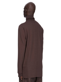 RICK OWENS FW25 CONCORDIANS SURF T IN DARKDUST CLASSIC COTTON JERSEY THIS SURF T IS BELOW HIP LENGTH WITH LONG SLEEVES AND A LOOSE FIT. IT HAS A HIGH RIBBED TURTLE NECK AND CUFFS. IT FEATURES THE SIGNATURE LEVEL SHOULDER SEAMS AND SINGLE SEAM RUNNING DOWN THE CENTRE BACK SPINE THIS MEDIUMWEIGHT CLASSIC COTTON JERSEY IS COMPACT WITH A DRY HANDFEEL THIS JERSEY IS MADE USING GOTS CERTIFIED ORGANIC COTTON WHICH MEANS THE NATURAL FIBER IS GROWN WITHOUT HARMFUL CHEMICALS, LEAVING OUR SOIL, AIR AND WATER CLEANER FROM CONTAMINATES WE STRIVE TO KEEP OUR PRODUCTION AS LOCAL AS POSSIBLE. THE FULL MANUFACTURING CYCLE OF THIS PRODUCT, FROM THE MATERIAL KNITTING TO SEWING AND FINISHING, WAS UNDERTAKEN CLOSE TO OUR HOME BASE IN CONCORDIA, ITALY COLOR: DARKDUST MATERIAL: 100% COTTON MODEL IS 189CM TALL MODEL WEARS SIZE S