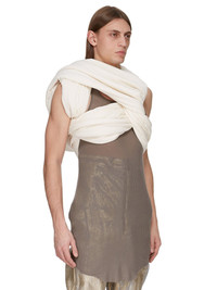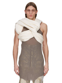 RICK OWENS SS25 HOLLYWOOD TRIPLE DONUT IN NATURAL CLASSIC COTTON JERSEY THIS TRIPLE DONUT CONSISTS OF THREE LARGE INTERLINKED CIRCULAR TUBES THAT CAN BE WORN MULTIPLE WAYS AROUND THE BODY THIS MEDIUMWEIGHT CLASSIC COTTON JERSEY IS COMPACT WITH A DRY HANDFEEL. THIS JERSEY IS MADE USING GOTS CERTIFIED ORGANIC COTTON WHICH MEANS THE NATURAL FIBER IS GROWN WITHOUT HARMFUL CHEMICALS, LEAVING OUR SOIL, AIR AND WATER CLEANER FROM CONTAMINATES WE STRIVE TO KEEP OUR PRODUCTION AS LOCAL AS POSSIBLE. THE FULL MANUFACTURING CYCLE OF THIS PRODUCT, FROM THE MATERIAL KNITTING TO SEWING AND FINISHING, WAS UNDERTAKEN CLOSE TO OUR HOME BASE IN CONCORDIA, ITALY. COLOR: NATURAL MATERIAL: 100% COTTON PADDING 100% POLYESTER MODEL IS 189CM TALL ITEM IS AVAILABLE IN ONE SIZE