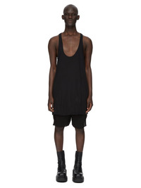 RICK OWENS SS24 LIDO RUNWAY FOG TANK IN BLACK UNSTABLE COTTON THIS FOG TANK TOP IS BELOW HIP LENGTH WITH A RAW CUT HEM. IT HAS A LOW, ROUND NECKLINE AND THIN SHOULDER STRAPS THAT FLOW INTO A SLIGHT RACER BACK. IT FEATURES THE SIGNATURE SINGLE SEAM RUNNING DOWN THE CENTRE BACK SPINETHIS LIGHTWEIGHT COTTON JERSEY IS SEMI-TRANSPARENT WITH A SOFT HANDFEEL. THIS JERSEY IS MADE USING GOTS CERTIFIED ORGANIC COTTON WHICH MEANS THE NATURAL FIBER IS GROWN WITHOUT HARMFUL CHEMICALS, LEAVING OUR SOIL, AIR AND WATER CLEANER FROM CONTAMINATES WE STRIVE TO KEEP OUR PRODUCTION AS LOCAL AS POSSIBLE. THE FULL MANUFACTURING CYCLE OF THIS PRODUCT, FROM THE MATERIAL KNITTING TO SEWING AND FINISHING, WAS UNDERTAKEN CLOSE TO OUR HOME BASE IN CONCORDIA, ITALY. - COLOR: BLACK - MATERIAL: 100% COTTON - MODEL IS 189CM TALL - MODEL WEARS SIZE 48
