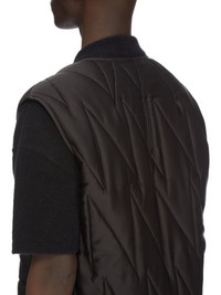 RICK OWENS FW24 PORTERVILLE SL QUILTED LINER IN BLACK WASHED CHARMEUSE THIS SL QUILTED VEST IS ABOVE HIP LENGTH AND SLEEVELESS. IT HAS A DEEP V NECK AND A CENTRE FRONT ZIPPER CLOSURE. IT HAS SIDE SEAM POCKETS WITH SNAPS AND ROUNDED TOP STITCHING, AS WELL AS LINES OF TOPSTITCHING AROUND THE ARMS, NECK AND A HEMLINE WITH BEVELED SIDES THIS LIGHTWEIGHT AND FLUID CHARMEUSE IS HAS A SEMI-SHINY SURFACE AND WASHED FINISH. THIS FABRIC IS MADE FROM FSC® CERTIFIED VISCOSE WHICH ENSURES THAT THE FIBERS ARE PRODUCED FROM RESPONSIBLY MANAGED SOURCES AND NO DEFORESTATION OCCURS - COLOR: BLACK - MATERIAL: 61% ACETATE + 39% VISCOSE - PADDING 90% POLYESTER + 10% ACRYLIC - MODEL IS 189CM TALL - MODEL WEARS SIZE 48