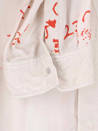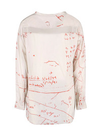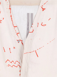 RICK OWENS VISCOSE CREAM SHIRT WITH V-NECK, ALL-OVER CONTRASTING PRINTED DETAILS, LONG SLEEVES, CURVED HEM. PRODUCT INFO PRODUCT CODE RU01F2295 KP111153 COMPOSITION: 52% VISCOSE, 48% CUPRO SIZE AND FIT: SOFT FIT MADE IN: ITALY