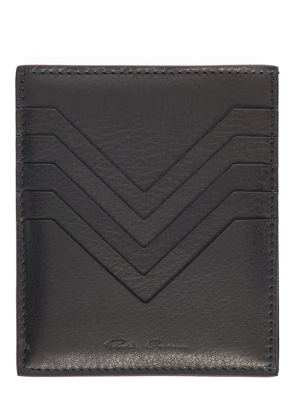 RICK OWENS SS24 LIDO SQUARE CC HOLDER IN BLACK SOFT GRAIN COW LEATHER THIS SQUARE CREDIT CARD HOLDER FEATURES FIVE CHEVRON CREDIT CARD SLOTS IN THE FRONT AND TWO SLIT POCKETS FOR NOTES, ONE ON THE SIDE AND ONE ON THE BACKIT IS EMBOSSED WITH THE RICK OWENS LOGO THIS MEDIUMWEIGHT COW LEATHER HAS A SUBTLE GRAIN TEXTURE AND NATURAL HANDFEEL. TANNED IN THE VENETO AREA OF ITALY, THIS LEATHER IS TUMBLED MULTIPLE TIMES IN A LARGE DRUM IN ORDER TO BRING OUT THE NATURAL GRAIN TEXTURE OF THE SKIN. THE LEATHER IS FINISHED WITH ANILINE AND AIR-DRIED IN ORDER TO ACHIEVE THE NATURAL AND WAXY HANDFEEL. THIS TANNERY IS LWG CERTIFIED WITH A SILVER RATING. - COLOR: BLACK - MATERIAL: 100% CALF LEATHER - LINING 100% LAMB LEATHER - WIDTH 9,5CM / HEIGHT 11,5CM