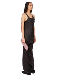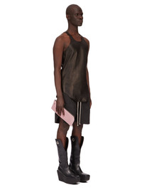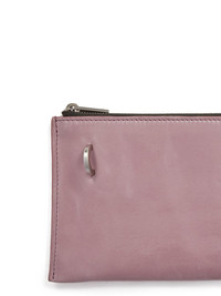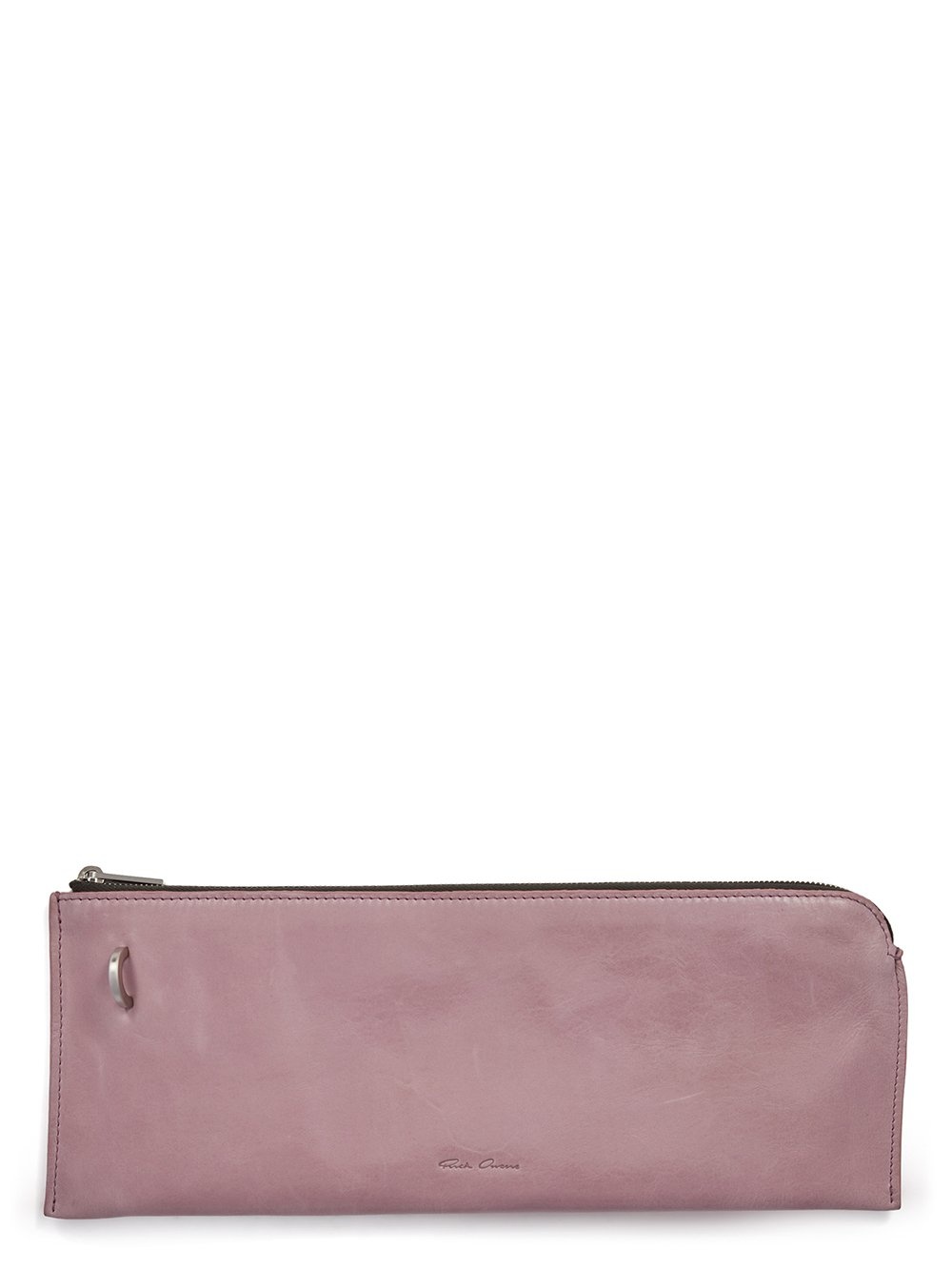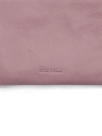 RICK OWENS SS24 LIDO INVITE WALLET IN DUSTY PINK SUGAR CALF LEATHER THIS INVITE WALLET IS A RECTANGULAR SHAPE WITH ONE ROUNDED CORNER AND A ZIPPER CLOSURE RUNNING ACROSS THE TOP. IT HAS A PALLADIUM TONE BRASS PONTICELLO D-LOOP ON FRONTIT IS EMBOSSED WITH THE RICK OWENS LOGO THIS LIGHTWEIGHT CALF LEATHER IS VEG TANNED AND FINISHED USING NATURAL WAXES WHICH GIVES THIS LEATHER ITS GLOSSY, SHINY SURFACE. VEG TANNING MEANS ONLY VEGETAL AND NATURAL TANNINS WERE USED IN THE PROCESS OF TANNING AND PRESERVING THIS LEATHER. - COLOR: DUSTY PINK - MATERIAL: 100% CALF LEATHER