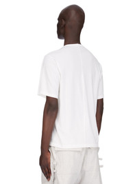 RICK OWENS SS25 HOLLYWOOD BRAD T IN MILK CLASSIC COTTON JERSEY THIS BRAD T IS BELOW-HIP LENGTH WITH SHORT SLEEVES. IT HAS A CLASSIC SQUARE CUT, A RIBBED ROUND NECK, AND LEVEL SHOULDER SEAMS. IT FEATURES THE SIGNATURE SINGLE SEAM RUNNING DOWN THE CENTER BACK SPINE THIS MEDIUMWEIGHT CLASSIC COTTON JERSEY IS COMPACT WITH A DRY HANDFEEL. THIS JERSEY IS MADE USING GOTS CERTIFIED ORGANIC COTTON WHICH MEANS THE NATURAL FIBER IS GROWN WITHOUT HARMFUL CHEMICALS, LEAVING OUR SOIL, AIR AND WATER CLEANER FROM CONTAMINATES WE STRIVE TO KEEP OUR PRODUCTION AS LOCAL AS POSSIBLE. THE FULL MANUFACTURING CYCLE OF THIS PRODUCT, FROM THE MATERIAL KNITTING TO SEWING AND FINISHING, WAS UNDERTAKEN CLOSE TO OUR HOME BASE IN CONCORDIA, ITALY. COLOR: MILK MATERIAL: 100% COTTON MODEL IS 189CM TALL MODEL WEARS SIZE S