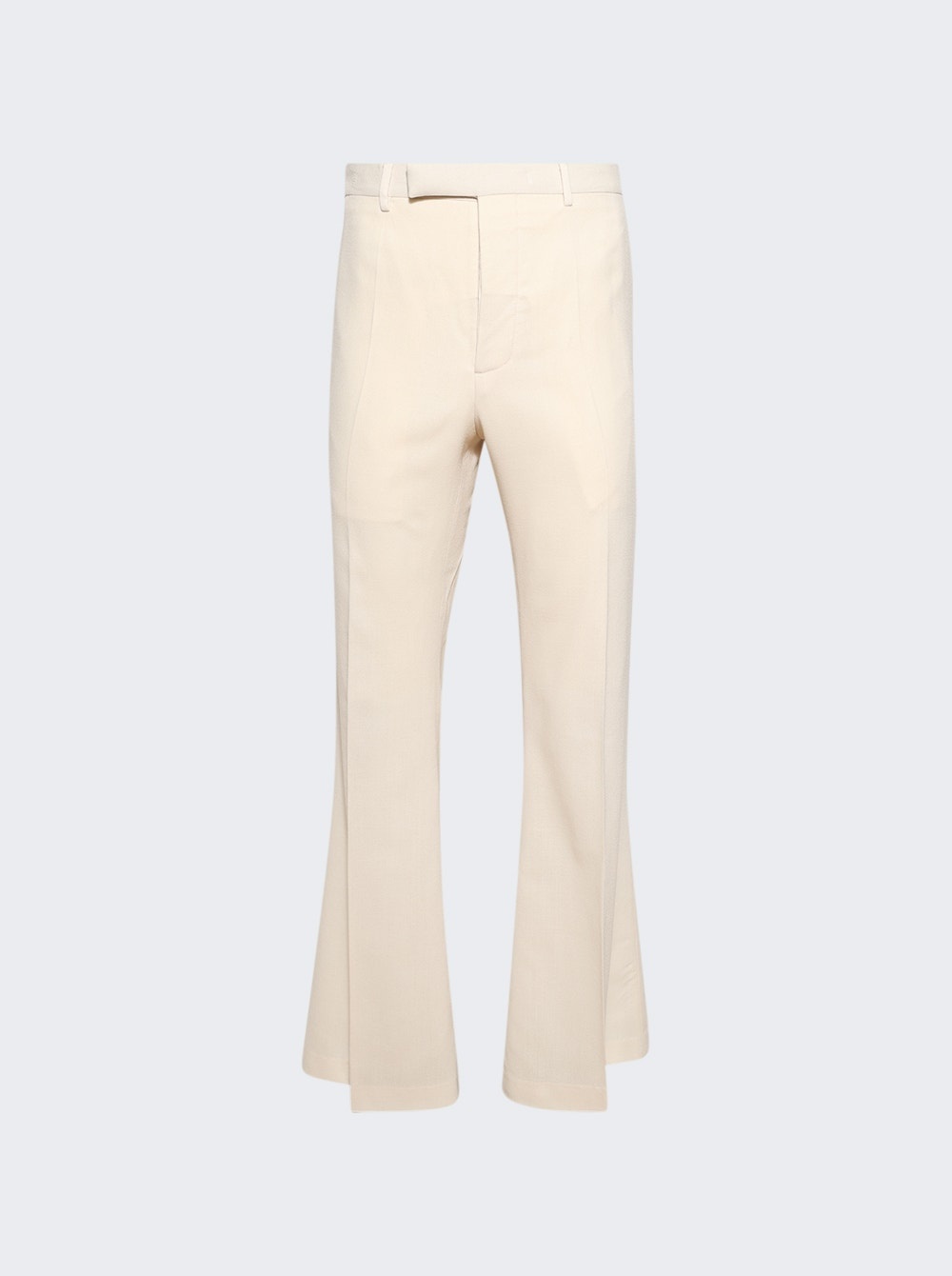 Details - Regular fit - Zipper and wrap button closure - Two side seam pockets - Two back welt pockets with buttons - Pressed creases on the front - Wide leg - Care according to label - Material: 100% Wool - Model is 6'1"/185cm and is wearing a size M Brand Style: RU01E5350 WA Designer/Brand: RICK OWENS