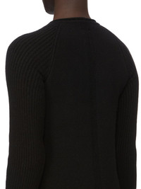 RICK OWENS FW23 LUXOR RUNWAY PULL IN BLACK RECYCLED CASHMERE THIS PULL IS HIP LENGTH WITH A SLIM FIT. IT HAS LONG RIBBED SLEEVES WITH RAGLAN SEAM LINES AND A ROUND NECKLINE, A STRETCH RIB WAISTBAND AND A SIGNATURE KNIT CHANNEL RUNNING DOWN BOTH THE CENTRE FRONT AND THE SPINE RECYCLED CASHMERE - COLOR: BLACK - MATERIAL: 97% CASHMERE + 3% WOOL - DETAIL 68% VISCOSE + 32% POLYESTER - MODEL IS WEARING SIZE S - MODEL IS 189 CM TALL