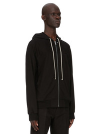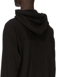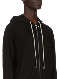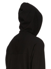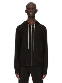 RICK OWENS FW25 CONCORDIANS WINDBREAKER IN BLACK HEAVY JERSEY THIS WINDBREAKER IS ABOVE HIP LENGTH, AND HAS LONG RAGLAN SLEEVES WITH A FRONT AND BACK YOKE. IT HAS A CENTRE FRONT ZIPPER, A HOOD WITH DRAWSTRING, TWO LARGE SIDE FRONT POCKETS WITH ROUNDED TOPSTITCHING, SIGNATURE CENTRE FRONT SEAM AND RIBBED CUFF AND HEM. THIS HEAVYWEIGHT JERSEY IS COMPACT WITH A DRY HANDFEEL. THIS JERSEY IS MADE USING GOTS CERTIFIED ORGANIC COTTON WHICH MEANS THE NATURAL FIBER IS GROWN WITHOUT HARMFUL CHEMICALS, LEAVING OUR SOIL, AIR AND WATER CLEANER FROM CONTAMINATES. COLOR: BLACK MATERIAL: 100% COTTON MODEL IS 189CM TALL MODEL WEARS SIZE S