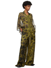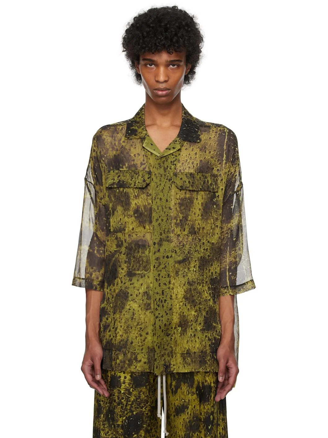 Sheer silk chiffon shirt. Pattern printed throughout. · Open spread collar · Button closure · Flap pockets · Vented side seams · Dropped shoulders · Buffalo horn hardware Supplier color: Acid/Black 100% silk. Made in Italy 251232M192018