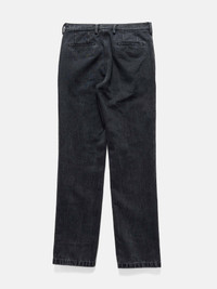 RIER redefines classic tailoring by blending sophisticated cuts with the rugged appeal of denim. Over-dyed black and gently tumbled for a worn-in look, these trousers emphasize seams and wear points with subtle distressing. Additional details are added through discreet side pockets, a flap back pocket, and a hidden ticket pocket at the waistband. These trousers offer a refined balance of durability and style, ideal for versatile daily wear. DETAILS - DNM25 - 100% Cotton - Japanese denim - Slim fit - Stonewash finish - Slanted hand pockets - Welt back pockets - Pleated back waist - Clasp closure - Made in Italy
