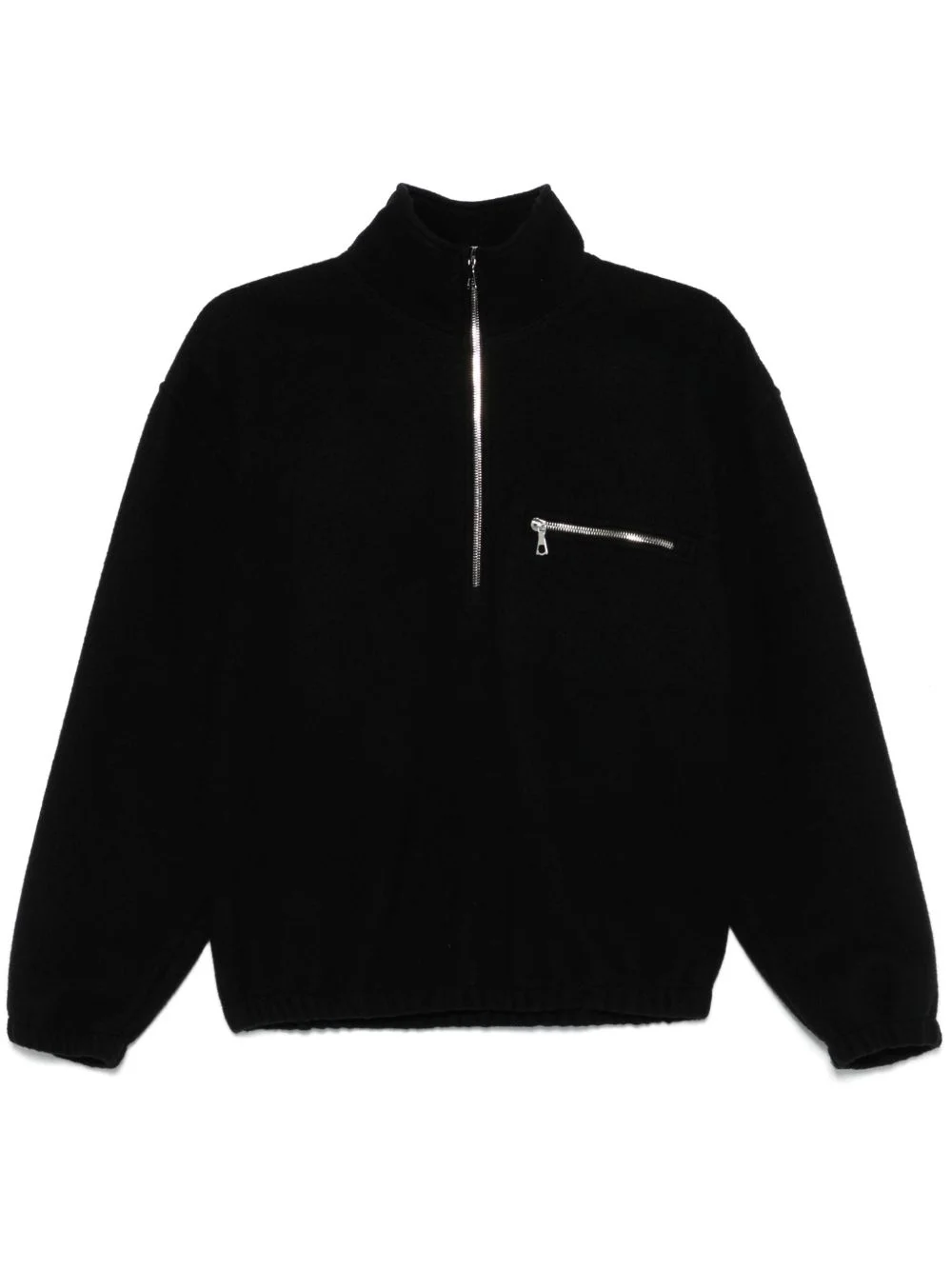 fleece sweatshirt Highlights - Black - Half front zip fastening - Zip-fastening chest pocket - Elasticated cuffs - Elasticated hem Imported Composition Virgin Wool 100% Washing instructions Dry Clean Only