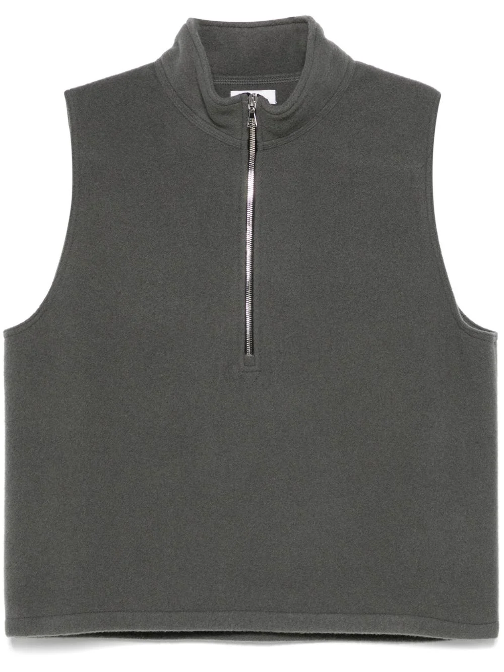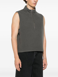 fleece vest Highlights - Dark grey - Short front zip fastening - Rear keeper loop - Stand-up collar - Sleeveless Imported Composition Virgin Wool 100% SIZE & FIT Model measurements Height 5 ft 10 in(1.78 m) Bust/Chest 29.52 in(75 cm) Hips 34.64 in(88 cm) Waist 23.62 in(60 cm) FittingInformation Designed for a relaxed fit, this piece allows for comfort and movement when worn Made from a midweight non-stretch fabric
