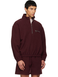 Lightweight brushed wool fleece jacket. · Stand collar · Half-zip closure · Zip pocket at chest · Elasticized hem and cuffs · Locker loop at back yoke · Silver-tone hardware Available exclusively at SSENSE. Supplier color: Burgundy 100% wool. Made in Austria 261661M202000