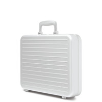 A reimagined classic, the RIMOWA Aluminum Attaché case in Silver pairs a vintage sensibility with minimalist design as it revives the briefcase for a new generation. Crafted in Köln, Germany, the Attaché’s sleek design features an anodized aluminum surface embossed with RIMOWA’s iconic grooves and smooth, rounded edges. Made for contemporary business use, its luxurious black matte leather interior has a flat pocket and two large gusseted compartments to carry documents and a laptop up to 16 inches. The ergonomic aluminum handle means the briefcase can be comfortably carried while an integrated combination lock keeps contents safe. Video : The model is 189cm-6'2". Key elements Handle The ergonomically designed aluminum handle folds back in place without noise. Lock system A secured metallic lock system that's fully integrated into the shell. Gusseted pockets Two large guesseted compartments hold up to a 16 inches computer and are neatly kept in place by magnets when not in use. Feet Four aluminum feet ensure a well-maintained vertical position. Made in silver matte aluminum, matching the handle. Size and Weight Measurement 13.78 x 16.34 x 3.35 inch Weight 6.61 lbs Volume 0.15 gal Materials Exterior : Anodized Aluminum Interior : Leather Handles : Anodized Aluminum Feet : Anodized Aluminum Gusseted pockets : Leather