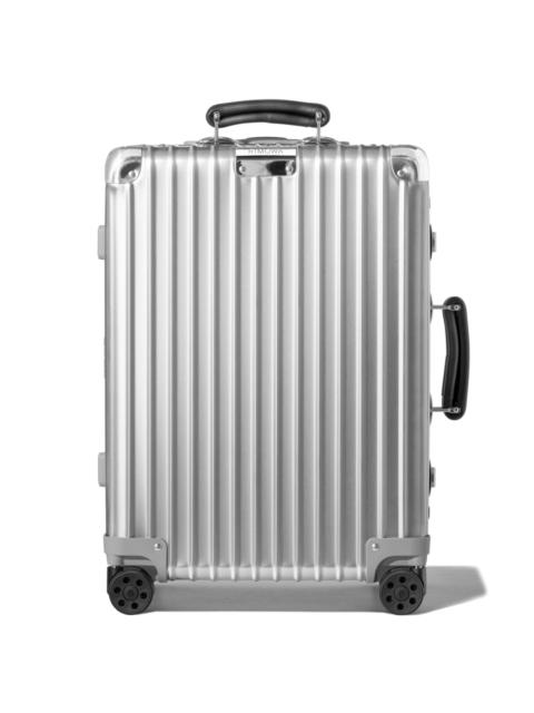 Designed for the most discerning travelers, the RIMOWA Classic Cabin in matte black effortlessly combines luxury with functionality. Rooted in heritage, each RIMOWA Classic features a high-end anodized aluminum alloy, riveted matte black aluminium corners, and hand-made leather handles, creating the perfect balance between craftsmanship and superior engineering. Designed to fit in most airplane overhead compartments, this lightweight aluminum cabin suitcase is ideal for short weekend or business trips of 2-3 days. Designed and engineered in Germany. Includes a complimentary leather luggage tag and sticker set. Key elements TSA-Approved Locks Each of our suitcases features TSA-approved locks that can be opened by security during airline baggage checks without causing any damage. Flex Divider Packed items are kept in perfect order during transit with the height adjustable Flex Divider, which can be adapted to suit your belongings. Multiwheel® System Pioneered by RIMOWA, this high-end system guarantees stable and effortless steering thanks to ball-bearing mounted wheels with cushioned axels. Telescopic Handle Engineered to offer a stageless handle for custom height adjustment and an ergonomic grip with a leather insert on the underside for optimum comfort. Size and Weight Measurement 21,7 x 15,8 x 9,1 INCH Weight 9,5 Lbs Volume 9,5 Gal Materials Outside : Aluminium Inside : Polyester Handles : Leather Wheels: Hard plastic Dividers: Polyester