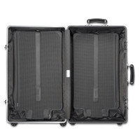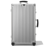 Designed for the most discerning travelers, the RIMOWA Classic Trunk in silver effortlessly combines luxury with functionality. Rooted in heritage, each RIMOWA Classic features a high-end anodized aluminum alloy, riveted high-gloss aluminum corners, and hand-made leather handles. Creating the perfect balance between craftsmanship and superior engineering, this large 4 wheel aluminum suitcase provides enough room for journeys of up to 14 days. Designed and engineered in Germany. Includes a complimentary leather luggage tag and sticker set. Key elements TSA-Approved Locks Each of our suitcases features TSA-approved locks that can be opened by security during airline baggage checks without causing any damage. Flex Divider Packed items are kept in perfect order during transit with the height adjustable Flex Divider, which can be adapted to suit your belongings. Multiwheel® System Pioneered by RIMOWA, this high-end system guarantees stable and effortless steering thanks to ball-bearing mounted wheels with cushioned axels. Telescopic Handle Engineered to offer a stageless handle for custom height adjustment and an ergonomic grip with a leather insert on the underside for optimum comfort. Size and Weight Measurement 29,5 x 14,2 x 18,5 INCH Weight 13,2 Lbs Volume 26,4 Gal Materials Outside: Aluminum Inside: Cotton Zippers: KK Metal Handles: Plastic Wheels: Polycarbonate Dividers: Cotton