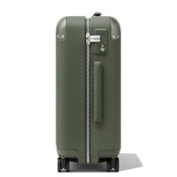 Crafted in leather and anodized aluminum, the RIMOWA Distinct Cabin suitcase offers an elevated travel experience. Each detail has been carefully considered to make it a delightful and reliable travel companion. The collection offers an elegant exterior that features RIMOWA’s instantly recognizable grooves, as well as sturdy aluminum corners and rear protective bumpers to protect the suitcase while in motion. The sophisticated interior is adorned by RIMOWA's jacquard monogram. Ideal for 3 to 4 days of travel, the RIMOWA Distinct Cabin suitcase in Olive green features several functionalities: - Stage-Free Telescopic Handle - Leather Grabbing Handles - RIMOWA Multiwheel® System - A Flex Divider and a Zipped Compartment - A Flat-Bottomed Packing Area Designed in Germany. Produced in our RIMOWA factories. Includes a complimentary leather luggage tag for personalization opportunities. Discover the inspiration behind this new collection Key elements Telescopic Handle Engineered to offer seamless stage-free adjustment for maximum comfort and smooth maneuverability. TSA-Approved Locks Each of our suitcases features TSA-approved locks that can be opened by security during airline baggage checks without causing any damage. Kick Plates Two protective bumper guards on the rear shell protect the suitcase from shocks while in motion. RIMOWA Multiwheel® System Pioneered by RIMOWA, this high-end system guarantees stable and effortless steering thanks to ball-bearing mounted wheels with cushioned axels. Interior Organization The interior features a fully zipped compartment to store all your belongings, a large gusseted pocket for packing comfort, and an adjustable Flex Divider — RIMOWA’s patented compression system to pack more while keeping items in perfect order during transport. Flat Bottomed Interior A practical flat area on the right-hand side that optimizes packing space and experience. Size and Weight Measurement 21.6 x 15.8 x 9.1 inch Weight 8.6 lbs Volume 8.72 gal Materials Outside : Leather & aluminum Inside : Nylon Jacquard Zipper : Metal Handles : Leather Wheels : Hard-wearing Plastic Divider : Nylon & Mesh