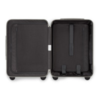 The world’s first ever polycarbonate suitcase, designed in Germany to provide the best in high-tech functionality. This strong, durable, and lightweight carry-on suitcase is designed to fit in most airline overhead bins and the ideal travel tool for purposeful travelers. Perfect for 2-3 days of travel, the RIMOWA Essential Cabin in slate gray with a glossy finish is the ultimate in hard shell luggage innovation. Includes a complimentary leather luggage tag and a sticker. Video: The model is 184cm-6'0". Key elements TSA-Approved Locks Each of our suitcases features TSA-approved locks that can be opened by security during airline baggage checks without causing any damage. Dual interior organization The interior features a fully zipped compartment with a large mesh zipped pocket for additional storage and a height-adjustable Flex Divider - RIMOWA’s patented compression system - to keep items in perfect order during transport. Multiwheel® System Pioneered by RIMOWA, this high-end system guarantees stable and effortless steering thanks to ball-bearing mounted wheels with cushioned axels. Telescopic Handle Engineered to offer seamless stage-free adjustment for maximum comfort and smooth maneuverability. Size and Weight Measurement 21,7 x 15,8 x 9,1 inch Weight 7,1 Lbs Volume 9,8 Gal Materials Outside : Polycarbonate Inside : Polyester Zippers : Plastic and Metal Handles : Plastic Wheels: Hard plastic Dividers: Polyester