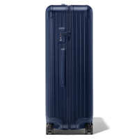 Made of high-performance polycarbonate, RIMOWA Essential is a reliable and lightweight suitcase for your journeys ahead. Find the best travel companion for your business or leisure travels from a vast range of colors and finishes. Ideal for 14 to 15 days of travel, the RIMOWA Essential Check-in L in matte blue features several sophisticated functionalities: - Stage-free telescopic handle - RIMOWA Multiwheel® System - TSA-approved locks - Dual interior organization Includes a complimentary leather luggage tag and a sticker. Designed in Germany. Key elements TSA-Approved Locks Each of our suitcases features TSA-approved locks that can be opened by security during airline baggage checks without causing any damage. Dual interior organization The interior features a fully zipped compartment with a large mesh zipped pocket for additional storage and a height-adjustable Flex Divider - RIMOWA’s patented compression system - to keep items in perfect order during transport. RIMOWA Multiwheel® System Pioneered by RIMOWA, this high-end system guarantees stable and effortless steering thanks to ball-bearing mounted wheels with cushioned axles. Telescopic Handle Engineered to offer seamless stage-free adjustment for maximum comfort and smooth maneuverability. Size and Weight Measurement 30.6 x 20.5 x 11.1 inch Weight 10.6 lbs Volume 23 gal Materials Exterior : Polycarbonate Interior : Polyester Zippers : Plastic and Metal Handles : Hard wearing plastic Wheels : Hard wearing plastic Flex Divider : Polyester & Mesh