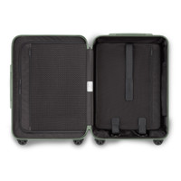 Made of high-performance polycarbonate, the RIMOWA Essential Sleeve collection offers a versatile option equally fitting for leisurely escapes and professional journeys. Designed to be highly practical, it offers quick access and protection to the items you need while traveling, making it the ultimate companion for those constantly on the move. Ideal for 3 to 4 days of travel, the RIMOWA Essential Sleeve Cabin in gloss Eucalyptus green features several sophisticated functionalities: - Padded front pocket - Stage-free telescopic handle - RIMOWA Multiwheel® System - TSA-approved locks - Dual-organization interior Includes a complimentary leather luggage tag and a sticker. Designed in Germany. Produced in our RIMOWA factories. Key elements TSA-Approved Locks Each of our suitcases features TSA-approved locks that can be opened by security during airline baggage checks without causing any damage. Front Pocket Water-resistant and padded, it provides easy access and protection for a 16-inch laptop, and flat-pack essentials such as mobile phones and documents. Interior Organization The interior features a fully zipped compartment to contain all your belongings, a large mesh zipped pocket for additional storage, and an adjustable Flex Divider-- RIMOWA’s patented compression system to pack more while keeping items in perfect order during transport. RIMOWA Multiwheel® System Pioneered by RIMOWA, this high-end system guarantees stable and effortless steering thanks to ball-bearing mounted wheels with cushioned axles. Telescopic Handle Engineered to offer seamless stage-free adjustment for maximum comfort and smooth maneuverability. Size and Weight Measurement 21.7 x 15.8 x 9.1 inch Weight 8 lbs Volume 9.8 gal Materials Exterior : Polycarbonate Exterior Pocket : Nylon Interior : Polyester & Mesh Handles : Hard wearing plastic Dividers : Polyester Zippers : Plastic and Metal Wheels : Hard wearing plastic