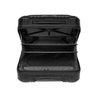 Made of high-performance polycarbonate, the RIMOWA Essential Sleeve collection offers a versatile option for business travel and beyond. Designed to be highly practical, it offers quick access and protection to belongings, making it the ultimate companion for those constantly on the move. Ideal for overnight stays and up to 3 days of travel, the RIMOWA Essential Sleeve Compact in Matte Black features a number of ingenious functionalities: - Padded front pocket - Stage-free telescopic handle - RIMOWA Multiwheel® System - TSA-approved locks - Removable interior divider Includes a complimentary leather luggage tag and a sticker. Designed in Germany. Produced in our RIMOWA factories. Video: The models are 189cm-6'2" tall (man) and 175cm-5'7" tall (woman). Key elements TSA-Approved Locks Each of our suitcases features TSA-approved locks that can be opened by security during airline baggage checks without causing any damage. Front Pocket Water-resistant and padded, it provides easy access and protection for a 13-inch laptop, and flat-pack essentials such as mobile phones and documents. Flexible Interior Remove the padded accordion compartment used to accommodate up to 16-inch laptops to transform this suitcase from business to leisure. Compression Straps Packed items are kept in perfect order during transit with these integrated compression straps. Telescopic Handle Engineered to offer seamless stage-free adjustment for maximum comfort and smooth maneuverability. RIMOWA Multiwheel® System Pioneered by RIMOWA, this high-end system guarantees stable and effortless steering thanks to ball-bearing mounted wheels with cushioned axels. Size and Weight Measurement 15.75 x 16.73 x 9.05 inch Weight 7.7 lbs Volume 8.1 gal Materials Exterior : Polycarbonate Interior : Polyester & Mesh Handles : Hard wearing plastic Dividers : Polyester Zippers : Plastic and Metal Pocket : Nylon Wheels : Hard wearing plastic
