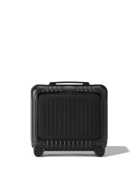 Made of high-performance polycarbonate, the RIMOWA Essential Sleeve collection offers a versatile option equally fitting for leisurely escapes and professional journeys. Designed to be highly practical, it offers quick access and protection to the items you need while traveling, making it the ultimate companion for those constantly on the move. Ideal for overnight stays and up to 3 days of travel, the RIMOWA Essential Sleeve Compact in gloss Eucalyptus green features several sophisticated functionalities: - Padded front pocket - Stage-free telescopic handle - RIMOWA Multiwheel® System - TSA-approved locks - Removable interior divider Includes a complimentary leather luggage tag and a sticker. Designed in Germany. Produced in our RIMOWA factories. Video: The models are 183cm-6'0" tall (man) and 174cm-5'9" tall (woman). Key elements TSA-Approved Locks Each of our suitcases features TSA-approved locks that can be opened by security during airline baggage checks without causing any damage. Front Pocket Water-resistant and padded, it provides easy access and protection for a 13-inch laptop, and flat-pack essentials such as mobile phones and documents. Flexible Interior Remove the padded accordion compartment used to accommodate up to 16-inch laptops to transform this suitcase from business to leisure. Compression Straps Packed items are kept in perfect order during transit with these integrated compression straps. Telescopic Handle Engineered to offer seamless stage-free adjustment for maximum comfort and smooth maneuverability. RIMOWA Multiwheel® System Pioneered by RIMOWA, this high-end system guarantees stable and effortless steering thanks to ball-bearing mounted wheels with cushioned axles. Size and Weight Measurement 15.75 x 16.73 x 9.05 inch Weight 7.7 lbs Volume 8.1 gal Materials Exterior : Polycarbonate Exterior Pocket : Nylon Interior : Polyester & Mesh Handles : Hard wearing plastic Dividers : Polyester Zippers : Plastic and Metal Wheels : Hard wearing plastic