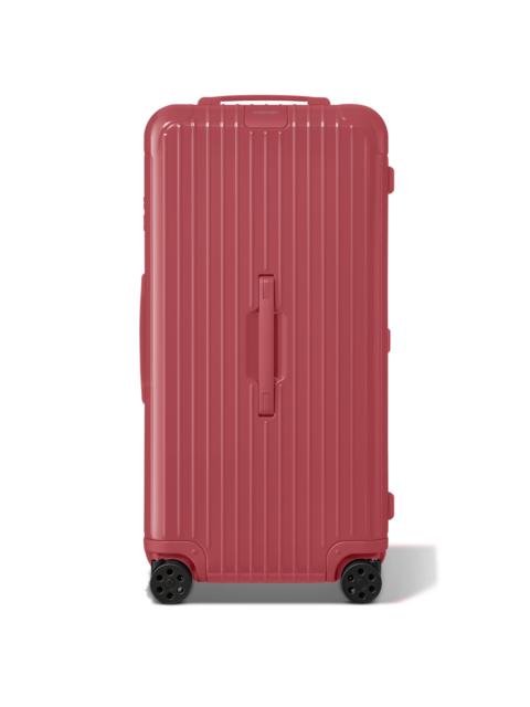Made of high-performance polycarbonate, RIMOWA Essential is a reliable and lightweight suitcase for your journeys ahead. Find the best travel companion for your business or leisure travels from a vast range of colors and finishes. Ideal for 2 weeks or more of travel, the RIMOWA Essential Trunk Plus in gloss Slate grey features several sophisticated functionalities: - Stage-free telescopic handle - RIMOWA Multiwheel® System - TSA-approved locks - Dual-organization interior Includes a complimentary leather luggage tag and a sticker. Designed in Germany. Produced in our RIMOWA factories. Video : The model is 189cm-6'2". Key elements TSA-Approved Locks Each of our suitcases features TSA-approved locks that can be opened by security during airline baggage checks without causing any damage. Dual-organization Interior The interior features a fully zipped compartment with a large mesh zipped pocket for additional storage and a height-adjustable Flex Divider - RIMOWA’s patented compression system - to keep items in perfect order during transport. Multiwheel® System Pioneered by RIMOWA, this high-end system guarantees stable and effortless steering thanks to ball-bearing mounted wheels with cushioned axles. Telescopic Handle Engineered to offer seamless stage-free adjustment for maximum comfort and smooth manoeuvrability. Size and Weight Measurement 31.5 x 14.6 x 16.1 inch Weight 11.9 lbs Volume 26.7 gal Materials Exterior : Polycarbonate Interior : Polyester Zippers : Plastic and Metal Handles : Hard wearing plastic Wheels : Hard wearing plastic Flex Divider : Polyester & Mesh