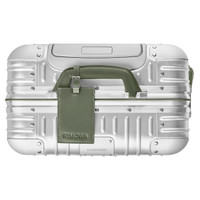Crafted from high-end anodized aluminum, the RIMOWA Original Twist offers a distinctive look. The color accents throughout the suitcase and matching leather handles adorn RIMOWA’s iconic Original luggage design and enrich your travel experience. Ideal for 3 to 4 days of travel, the RIMOWA Original Cabin Twist in Olive green features several ingenious functionalities: - Colorful handles and luggage tag in leather - Stage-free telescopic handle - RIMOWA Multiwheel® System - TSA-approved locks - Flex Divider Includes a complimentary sticker. Designed in Germany. Produced in our RIMOWA factories. Key elements TSA-Approved Locks Each of our suitcases features TSA-approved locks that can be opened by security during airline baggage checks without causing any damage. Flex Divider Packed items are kept in perfect order during transit with the height adjustable Flex Divider, which can be adapted to suit your belongings. Multiwheel® System Pioneered by RIMOWA, this high-end system guarantees stable and effortless steering thanks to ball-bearing mounted wheels with cushioned axels. Telescopic Handle Engineered to offer seamless stage-free adjustment for maximum comfort and smooth maneuverability. Size and Weight Measurement 21.7 x 15.8 x 9.1 inch Weight 10 lbs Volume 9 gal Materials Outside : Aluminum Inside : Polyester Handles : Leather Wheels: Hard plastic Dividers: Polyester