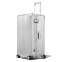 The unmistakable RIMOWA Original aluminum suitcase with its distinctive grooves is regarded as one of the most iconic luggage designs of all time. Remarkably robust and surprisingly lightweight, the RIMOWA Original Trunk Plus in silver is an unparalleled example of craftsmanship and innovation. Made from high-end anodized aluminum and designed with a distinctive shape inspired by our original trunks, this extra large suitcase is a timeless classic engineered to offer travelers long-lasting performance and optimum capacity for journeys of 2 weeks or more. Designed and engineered in Germany. Includes a complimentary leather luggage tag and sticker set. Key elements TSA-Approved Locks Each of our suitcases features TSA-approved locks that can be opened by security during airline baggage checks without causing any damage. Flex Divider Packed items are kept in perfect order during transit with the height adjustable Flex Divider, which can be adapted to suit your belongings. Multiwheel® System Pioneered by RIMOWA, this high-end system guarantees stable and effortless steering thanks to ball-bearing mounted wheels with cushioned axels. Telescopic Handle Engineered to offer seamless stage-free adjustment for maximum comfort and smooth manoeuvrability. Size and Weight Measurement 31,5 x 14,8 x 17 INCH Weight 14,1 Lbs Volume 26,5 Gal Materials Outside: Aluminum Inside: Cotton Zippers: KK Metal Handles: Plastic Wheels: Polycarbonate Dividers: Cotton