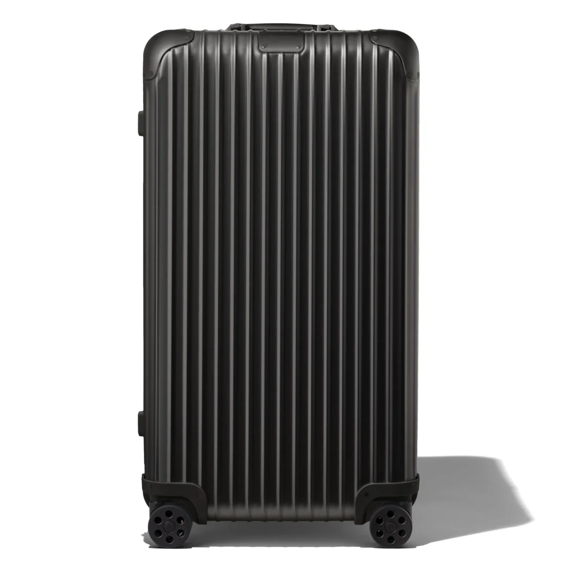 Crafted from high-end anodized aluminum, RIMOWA Original is an iconic luggage design, instantly recognizable with its sleek lines and signature grooves. Within a vast range of sizes, find your trusted and durable companion for your business and leisure travels. Ideal for 3 weeks or more of travel, the RIMOWA Original Trunk XL in black is our largest suitcase. An oversized edition inspired by our original trunks, featuring several ingenious functionalities: - Stage-free telescopic handle - RIMOWA Multiwheel® System - TSA-approved locks - Flex Divider Includes a complimentary leather luggage tag and a sticker. Designed in Germany. Produced in our RIMOWA factories. Video: The model is 187cm-6'1". Key elements TSA-Approved Locks Each of our suitcases features TSA-approved locks that can be opened by security during airline baggage checks without causing any damage. Flex Divider Packed items are kept in perfect order during transit with the height adjustable Flex Divider, which can be adapted to suit your belongings. RIMOWA Multiwheel® System Pioneered by RIMOWA, this high-end system guarantees stable and effortless steering thanks to ball-bearing mounted wheels with cushioned axels. Telescopic Handle Engineered to offer seamless stage-free adjustment for maximum comfort and smooth maneuverability. Size and Weight Measurement 31.5 x 17.2 x 17 inch Weight 15 lbs Volume 34.3 gal Materials Outside: Aluminum Inside: Polyester Handles: Plastic Wheels: Hard plastic Dividers: Polyester