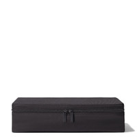 Crafted out of resilient, water-repellent, and recycled materials, the lightweight Packing Cube L in Black keeps essentials, from clothing and toiletries to tech devices and accessories, organized in your luggage. All packing cubes conveniently store flat and can be stacked one inside the other when not in use. Size and Weight Measurement 3,5 x 14,1 x 9,4 INCH Weight 0,48 lbs Volume 2 GAL Materials Outside : Recycled nylon Inside : 100% Polyester