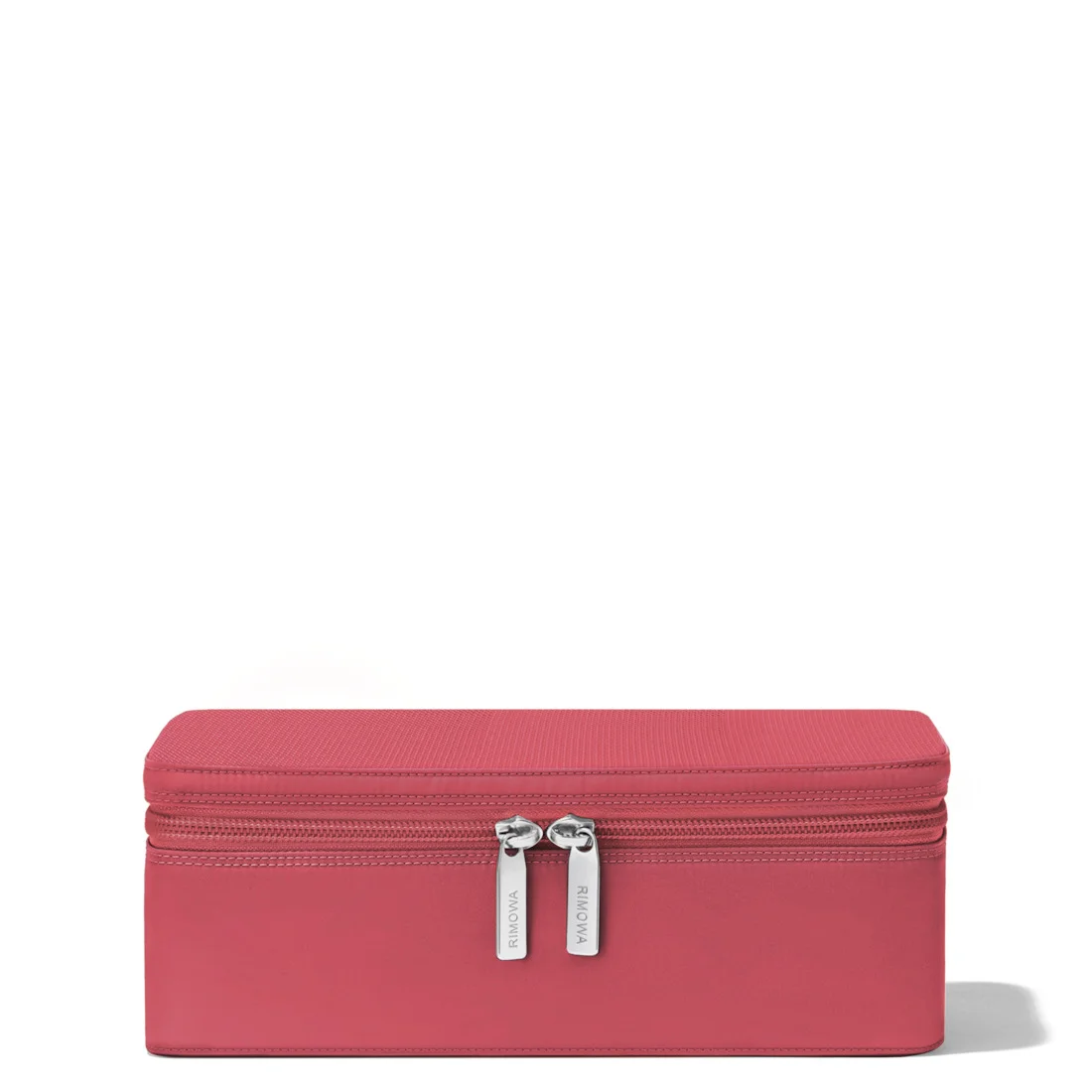 Crafted out of resilient, water-repellent, and recycled materials, the lightweight Packing Cube S in Granada pink keeps essentials, from clothing and toiletries to tech devices and accessories, organized in your luggage. All packing cubes conveniently store flat and can be stacked one inside the other when not in use. Size and Weight Measurement 3.5 x 9.4 x 4.7 inch Weight 0.24 lbs Volume 0.6 gal Materials Outside : Recycled nylon Inside : 100% Polyester