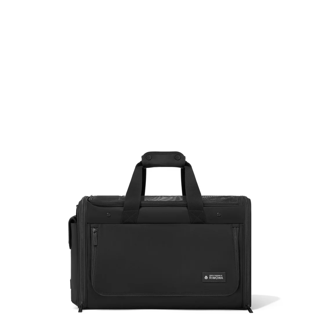 Made in a lightweight and crease-resistant fabric, the Pet Carrier Bag ensures the comfort and safety of your cat or small dog on every journey. Crafted with versatility in mind, the Pet Carrier Bag in black features convenient functionalities: - A soft, washable, and removable travel mat for your pet's comfort - A bowl for food or water - A built-in leash clip to ensure its safety - A magnetic closure side pocket for easy access to your pet travel essentials - A zipped back pocket to secure other pet accessories - A travel strap for securing the Pet Carrier Bag to your suitcase - A removable and adjustable shoulder strap with a pad for extra comfort - Soft structure and foldable sides for easy storage at home The Pet Carrier Bag is suitable for animals weighing up to 17.6 lbs. We recommend weighing and measuring your pet to ensure they will fit comfortably inside. Key elements Foldable Soft Bag The Pet Carrier Bag easily folds and unfolds for simple storage. Washable & Removable Travel Mat The integrated mat is removable and machine washable. Water/Food Bowl A water/food bowl is included to ensure your pet is well hydrated/fed. Built-In Leash Clip The built-in leash clip can be attached to your pet's collar for added safety when traveling. Travel Strap A unique webbing strap emblazoned with RIMOWA Cologne coordinates allows you to conveniently fix the bag onto your suitcase. Shoulder Strap The shoulder strap features padding for added comfort. It's also easily adjustable and removable. Size and Weight Measurement 11 x 17.7 x 9.5 inch Weight 4 lbs Volume 7.4 gal Materials Exterior : Nylon Interior : Nylon & Polyester Hardware finishing touch : Matte Black