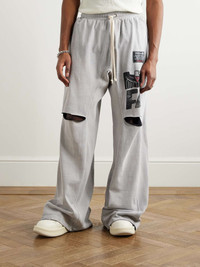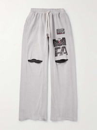 Flag Faster Wide-Leg Distressed Printed Cotton-Jersey Sweatpants