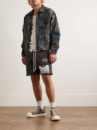 Flag Straight-Leg Frayed Logo-Print Cotton-Jersey Shorts