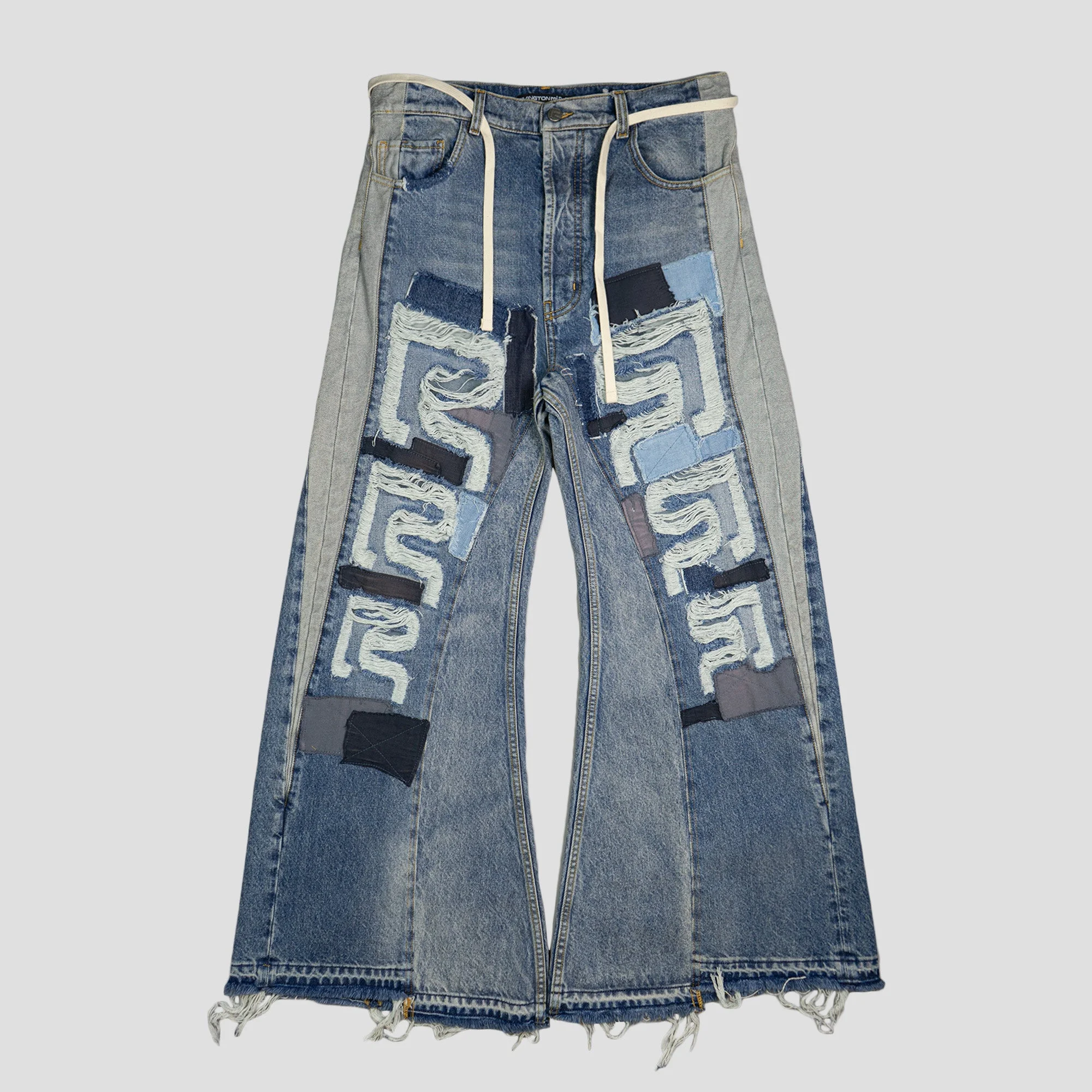 *100% Cotton *Baggy Fit *Drawstring on Waist *Zipper-fly *Patchwork *Raw Edge *Made in USA