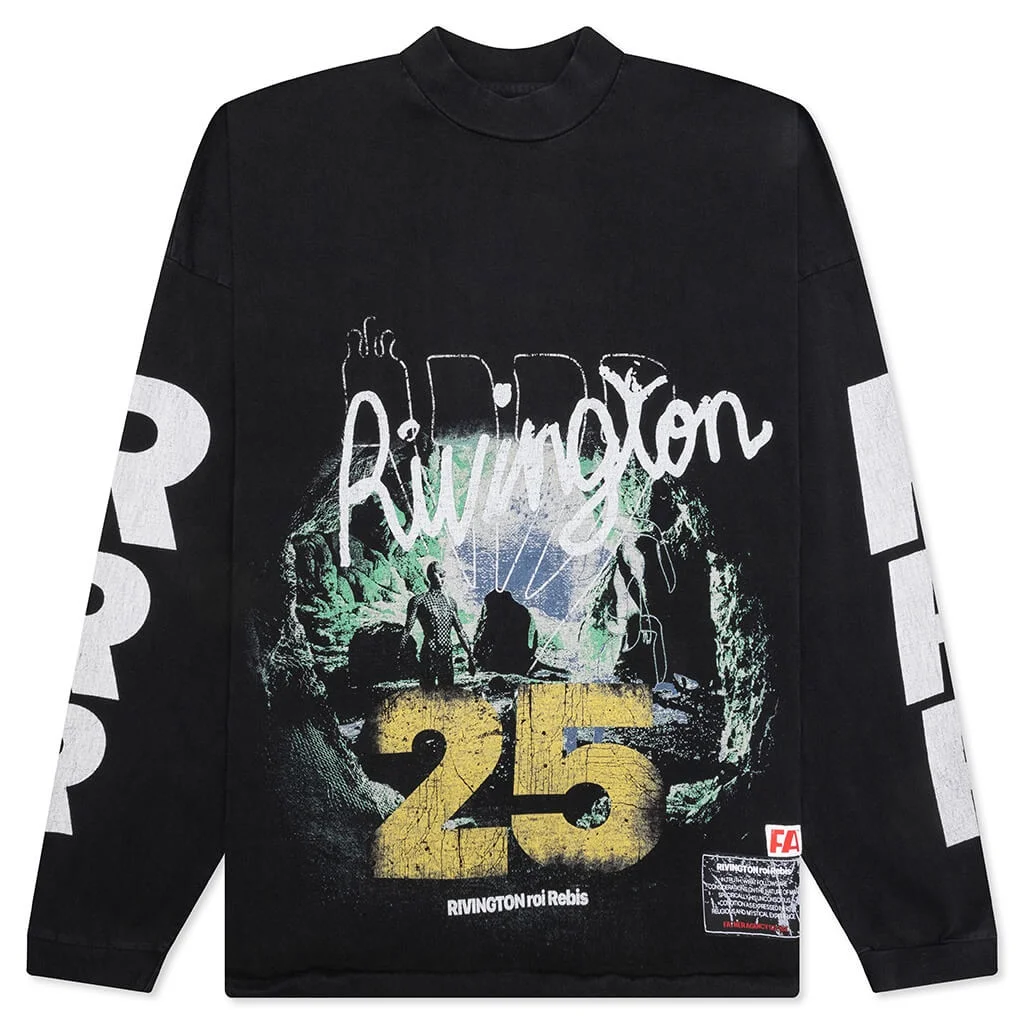 The Rivington Roi Rebis Inner Chamber L/S Tee in Jet Black combines bold design with everyday versatility. Made from cotton, this long-sleeve tee features an oversized fit and an extra-thick crewneck collar for a structured yet relaxed look. Ribbed cuffs enhance the fit, while cracked printed graphics on the front, back, and sleeves deliver a distinctive, lived-in feel. A woven label completes the design, underscoring the brand’s attention to detail. INCH LS00 JET - 100% Cotton - Oversized fit - Dropped shoulders - Extra thick crewneck collar - Ribbed cuffs - Woven label - Cracked printed graphics front back and sleeves - Style No: INCH-LS00-JBLK