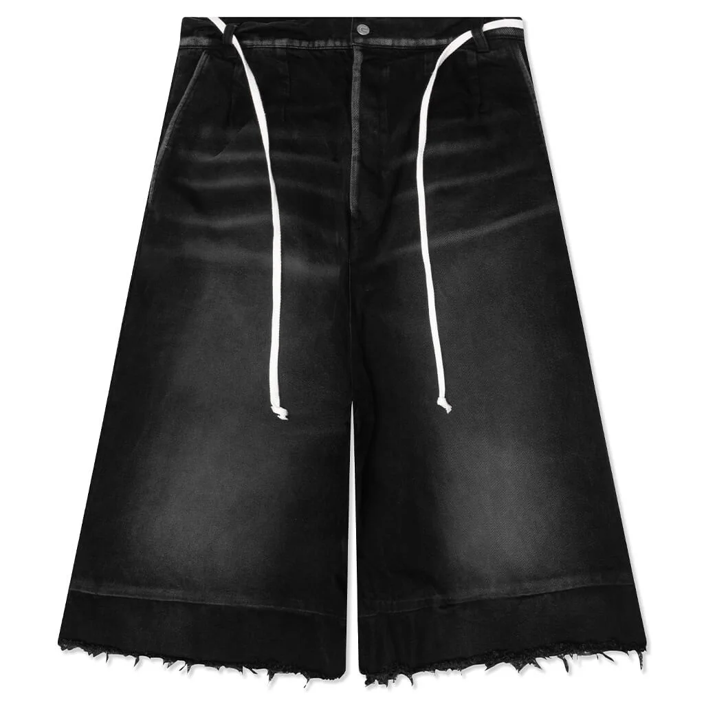 The RIVINGTON roi Rebis Meta Protestant Pant is made from cotton. Designed with a wide-leg, the pant is cropped to have a cut-off look and features raw hems. A classic button-fly is paired with a detachable drawstring belt for a touch of edge. The four-pocket design provides practicality and rounds out the design. - 100% Cotton - Cropped length - Wide-leg - Button-fly - Detachable drawstring - 4-pocket design - Raw hems - Faded treatment - Style No: MTPP-PA00-BLCK