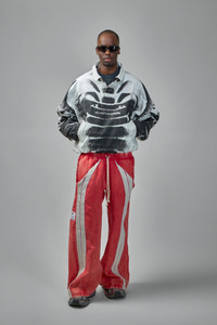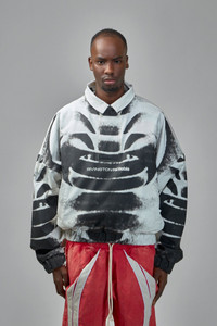 Jacket featuring a striking abstract black and white design with a bold graphic on the back. It sports a collared neck and long sleeves with elastic cuffs, providing a relaxed, oversized fit. Materials: 100% Cotton Color: white SKU: 153130 Brand style: MTPL-OP90 Size and Fit The model is 1.89m (6.2ft) and wears a size L.