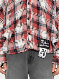 Nazarene shirt Highlights - Clay red - Front button fastening - Two chest welt pockets - Plaid check pattern - When buying this unisex item, keep in mind that it is graded in standard men's sizing. Made in United States Composition Polyester 50%, Cotton 50% SIZE & FIT Model measurements Height 5 ft 11 in(1.8 m) Bust/Chest 31.49 in(80 cm) Hips 36.61 in(93 cm) Waist 24.4 in(62 cm) FittingInformation This unisex piece is designed for an oversized fit whether you usually select women's or men's sizes Made from a midweight non-stretch fabric