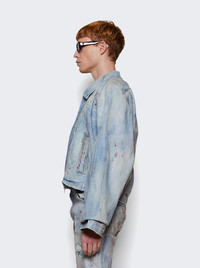 Details - Hand painted and stained denim jacket - Intentionally distressed - Each item is unique - Two-way zip closure - Relaxed fit - Cropped body Dimensions: Model is 6'1"/185cm and is wearing a size M Composition: 100% Cotton Care: Care according to label Brand Style: ROTK-JK53 Designer/Brand: RIVINGTON ROI REBIS