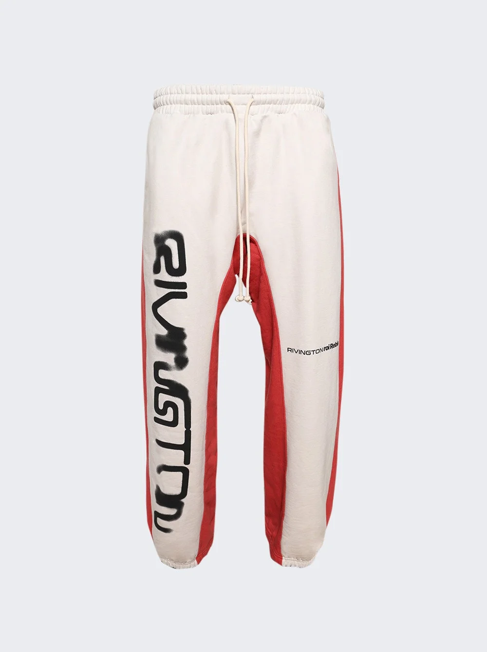 Details - Relaxed fit sweatpants - Wide, voluminous leg - Long length - Color blocked design - Acrylic screen printed logo - Elastic waistband with drawstring - Made in Los Angeles - Material: 100% Cotton fleece Size Information: Vendor Color Code: Brand Style: RFPS-SP60 Designer/Brand: RIVINGTON ROI REBIS