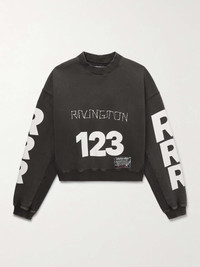 Striking visuals define RRR123's collections - this 'CVA' sweatshirt is embroidered with the founder's name and printed with logos across the front and sleeves. It's cut from fleece-back cotton-jersey and has dropped shoulder seams for a more relaxed fit. Size & Fit - Fits true to size. Take your normal size - Designed for a relaxed fit - Dropped shoulder seam - Mid-weight, slightly stretchy fabric - Model is shown wearing a M - Model measures: chest 38"/ 96cm, height 6'1"/ 185cm Details & Care - Black and white fleece-back cotton-jersey - 100% cotton; trim; 94% cotton, 6% spandex - Dry clean - Designer colour: Mechanic Black