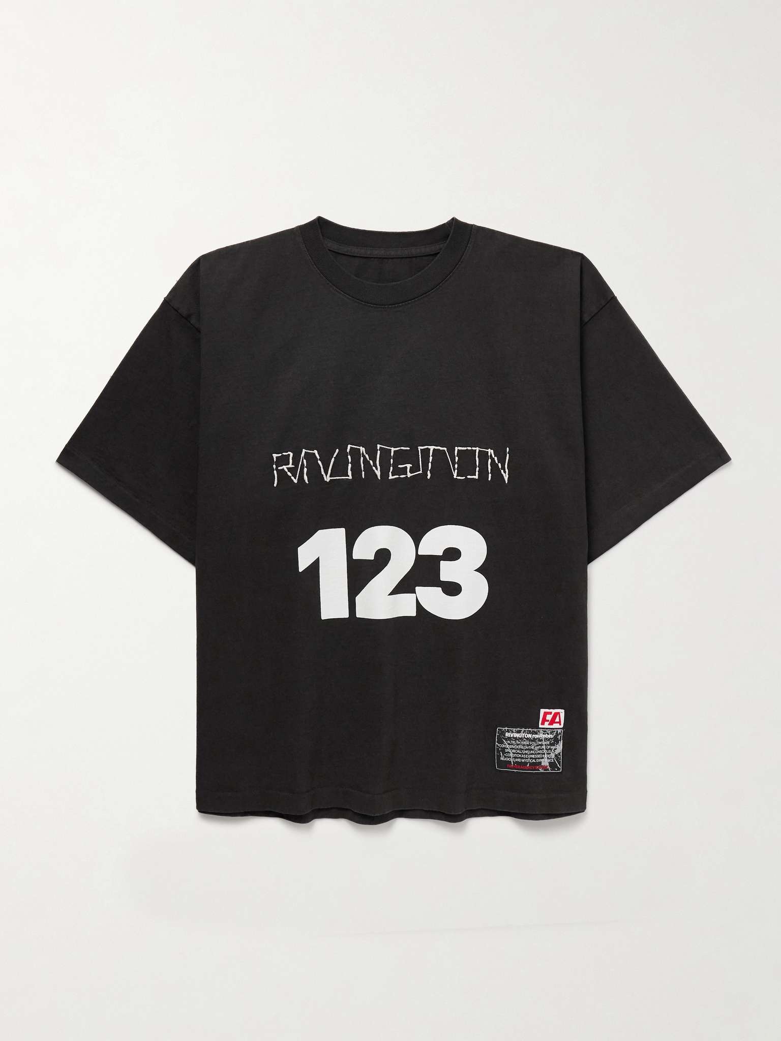 RRR123's logo-print T-shirt is embroidered with the founder's name using a continuous stitch. It's cut for a boxy fit from soft cotton-jersey and detailed with signature appliques near the hem. Size & Fit - Fits true to size. Take your normal size - Cut for a boxy fit - Dropped shoulder seam - Mid-weight, non-stretchy fabric - Model is shown wearing a M - Model measures: chest 38"/ 96cm, height 6'1"/ 185cm Details & Care - Black and white cotton-jersey - 100% cotton - Dry clean - Designer colour: Mechanic Black
