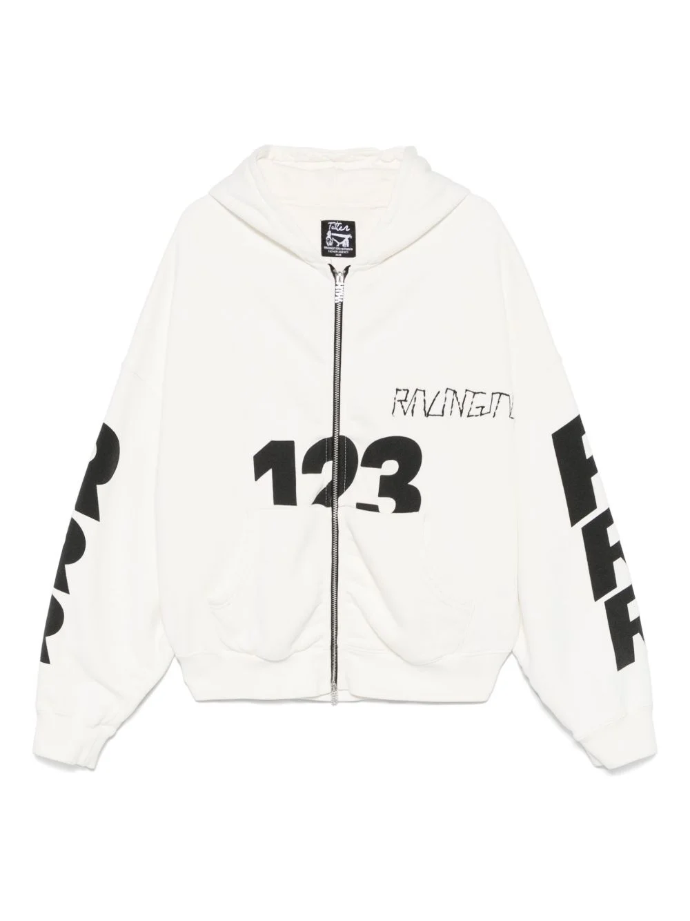 Details - Oversize hoodie - Long sleeves - Hooded - Zip closure - Side pockets - Embroidered logo design - Printed signature design on both sleeves and front and back - Care according to label - Material: 100% Cotton - Model is 6'1"/185cm and is wearing a size M Brand Style: CUSO-ZH90 Designer/Brand: RIVINGTON ROI REBIS