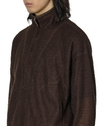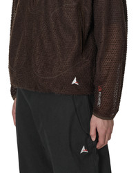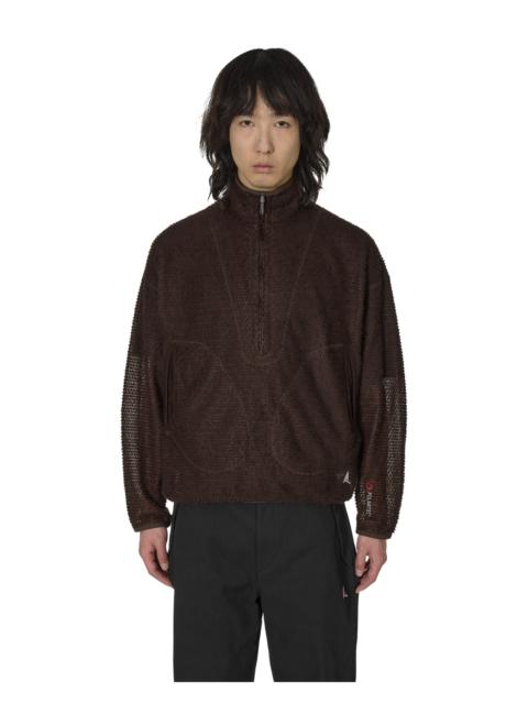 Half zip sweater made in Polartec® Alpha® Direct, dark brown color. Polartec® Alpha® Direct technology that can be in direct contact with skin or other fabric layers. By refining the shape and size of its lofted fibers, this new material increases breathable performance, expands versatile style options, and further reduces overall garment weight. Thermoregulator, versatile for both cold and hot temperatures. Loose, cropped fit for comfort and mobility. Embroidered logo on the front. Front pockets. Elasticized cuffs and hem. Details - Polartec® Alpha® Direct material that can be in direct contact with skin or other fabric layer - Increased breathability - Reduced garment weight - Thermoregulator, versatile for both cold and hot temperatures - Loose, cropped fit for comfort and mobility - Frontal half zip - Embroidered logo on the front - Two front pockets - Elasticized cuffs and hem Size and Fit Male model is wearing size M and he is 5.9 ft/1.82m with chest 33.5in/85cm Composition SELF 100% Polyester Made In Lithuania