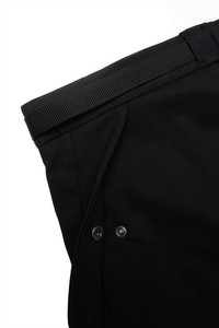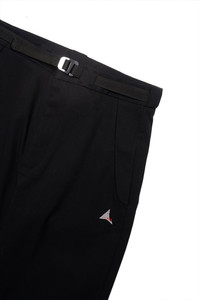 Loose fit twill chino crafted from water repellent cotton/nylon stretch fabric in black color. Features an adjustable belt on the waist for a customizable fit. Designed with symmetrical front and back pockets. Finished with an embroidered logo on the front. - Color: Black - Adjustable Belt on Waist - Water repellent Cotton/Nylon Stretch Fabric - Made in Portugal