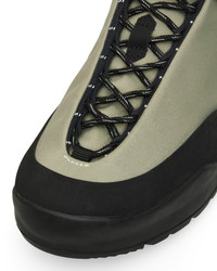 ROA’s updated version of the Cingino silhouette offers a refined take on the brand’s hybrid hiking sneaker, optimized for both performance and comfort. This iteration features an extended lacing system, allowing for greater adjustability and a more secure fit across varied foot shapes. The upper is crafted from high-quality, water-repellent nylon in sage color, providing lightweight durability and weather resistance, while a waterproof membrane lining ensures interior dryness in wet conditions. A rubberized toe cap adds protection against impacts and abrasion on rugged trails. Underfoot, the Vibram® XS TREK sole with a toothed tread pattern delivers superior traction across rough, uneven surfaces. Details - High-quality water-repellent nylon upper for lightweight durability - Waterproof membrane lining for weather protection and breathability - Extended lacing system for personalized fit and maximum stability - Rubberized toe cap for added protection on rough terrain - Vibram® XS TREK toothed tread pattern sole for superior traction on varied surfaces Composition UPPER: 58% Polyamide, 20% Rubber, 22% Polyurethane SOLE: 70% Rubber, 30% Phylon Made In China