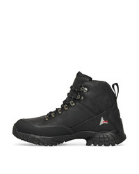 ROA’s signature hybrid boot, made for the landscape of the Dolomite mountains with an eye to the urban settings, the Andreas combines a rugged, untreated Kudu leather exterior in black for protection and durability with the comfort of an athletic shoe’s interior. Without treatment, the leather maintains its natural grain blemishes, showing a beautiful array of authentic natural scars and markings. The boots feature a custom Vibram® Megagrip Vybrid sole for traction on slippery surfaces, and a rubberized toe cap for added security. Our Kudu leather is sourced from a British LWG tannery, ensuring minimal environmental impact throughout its production process. Comes with an extra pair of laces in olive/reflective color. Details - Vibram® Megagrip Vybrid toothed tread pattern sole for optimal traction and use on sillpery, rough surfaces - Untreated Kudu leather, water repellent upper - Supportive and padded high top collar - Firm lacing system providing a secure and stable fit for the foot - Extra pair of laces in olive/reflective color - Made in Italy Composition UPPER: 95% Kudu leather (Tragelaphus), 5% Rubber SOLE: 70% Rubber, 30%Phylon Made In Italy