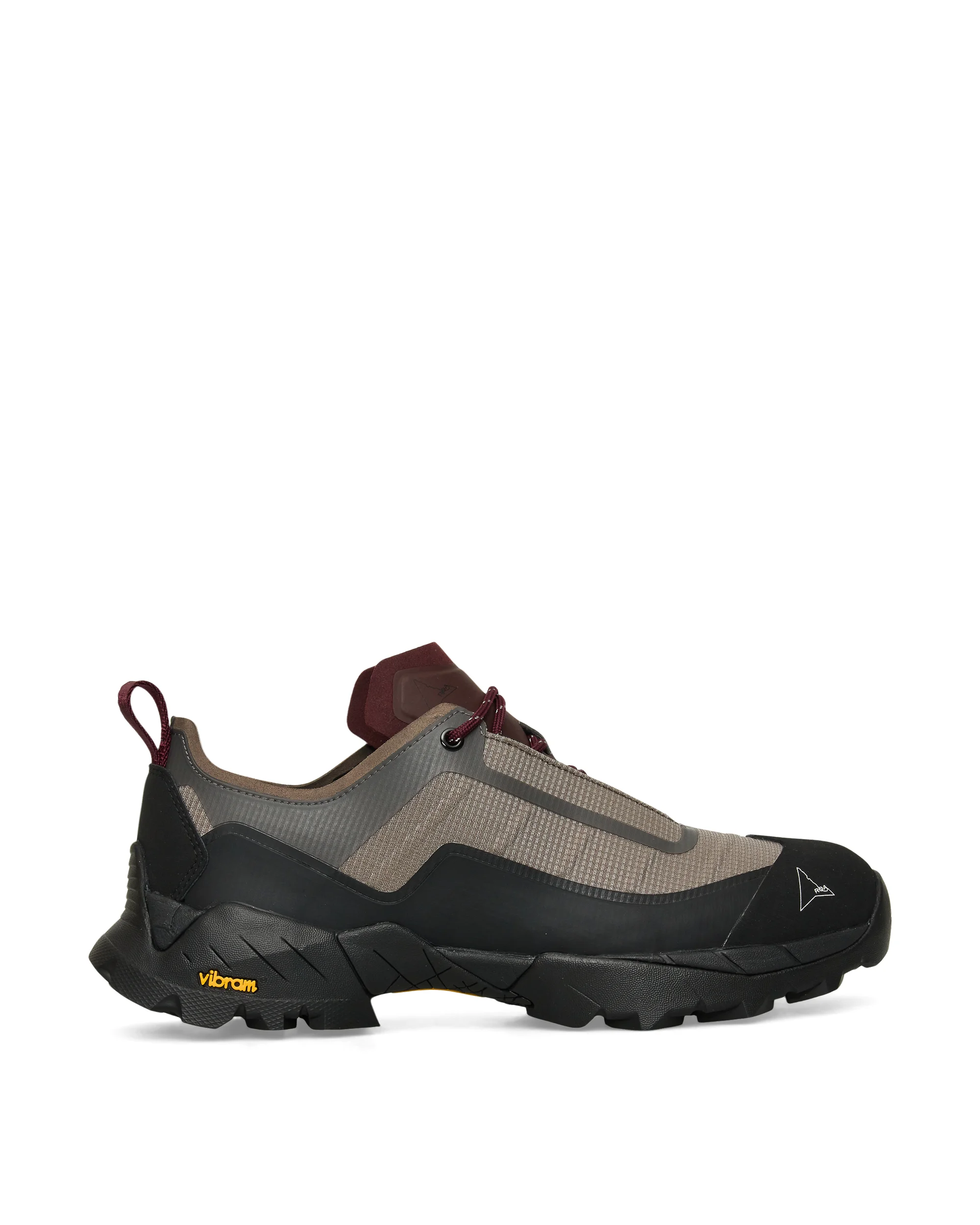 ROA’s Katharina Light offers a minimalist reinterpretation of the brand’s signature hybrid silhouette, designed for maximum breathability and reduced weight without compromising performance. This stripped-down version eliminates internal lining and padding, making it ideal for warmer conditions and lightweight movement. The upper is crafted from durable ripstop material in taupe and burgundy color, offering resistance to tearing while maintaining flexibility. Instead of the traditional rubber foxing, reinforced tape detailing is used to secure the structure, further reducing bulk and enhancing ease of wear. A Vibram® Megagrip outsole completes the design, ensuring outstanding traction on rugged terrain and city streets alike. Details - Lightweight ripstop upper for breathability and tear resistance - No lining or padding for minimal weight and maximum ventilation - Reinforced tape in place of rubber foxing for lighter structure - Vibram® Megagrip outsole for superior multi-surface traction Composition UPPER: 51% Polyamide, 31% Tpu, 13% Rubber, 5% Calf Leather SOLE: 70% Rubber, 30% Phylon Made In China